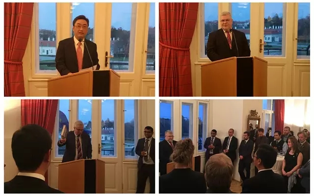 中国驻维也纳联合国和其他国际组织代表团史忠俊大使在致辞中高度评价了中文译本的组织单位beat365中文官方网站空间法研究所及翻译团队的卓越成果,认为中文译本对于促进中国空间法教育和科研,以及为航天实务部门开展工作提供指引的重要意义,并期待《科隆空间法评注》第二卷、第三卷的中文译本尽早问世。俄罗斯驻维也纳联合国代表团大使也参加了发布仪式并讲话,发布仪式由德国驻维也纳使团大使Fredrich Dauble主持。