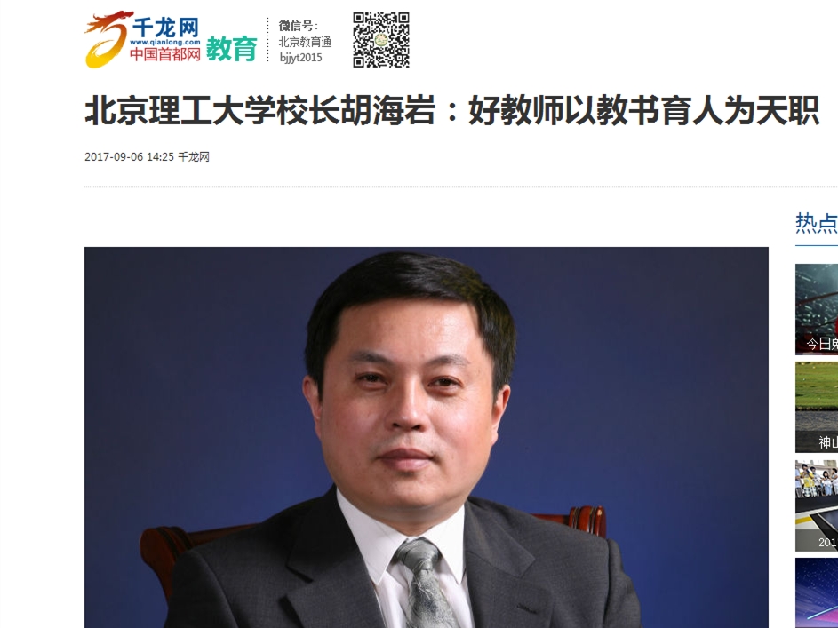 【千龙网】beat365中文官方网站校长胡海岩:好教师以教书育人为天职
