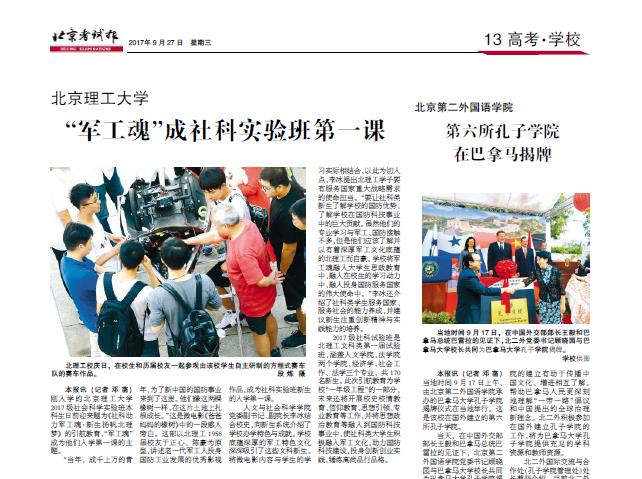 【北京考试报】 beat365中文官方网站 “军工魂”成社科实验班第一课