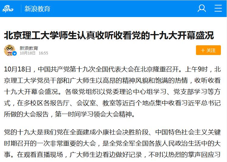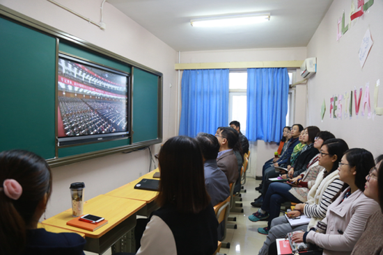 【新浪教育】beat365中文官方网站师生认真收听收看党的十九大开幕盛况