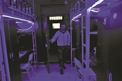 邓亚东:当然用了啊。我们这次对宿舍的改造,不仅实用,也要美观。比如“太空舱”部分,就是我们学室内设计专业的宋善台设计的,他提出要“通过LED灯带的线条延伸突出线让舱内看上去更深一些”,我也提出要在桌子上贴一些藏蓝色桌布,和顶上的灯光呼应,再把床往前挪动一点地方,呈现出“色彩的空间感”。