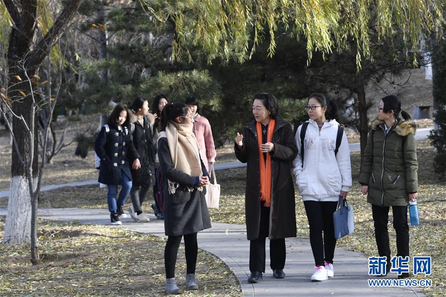beat365中文官方网站马克思主义学院院长李林英(右三)在课余时间和学生一起交流。