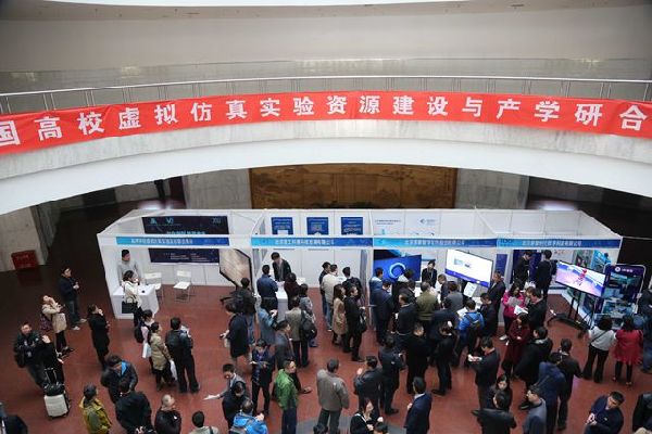大会在中心教学楼一层大厅设置了展览区,将高校与企业的虚拟仿真实验相关建设成果进行视频和展板等多种形式的展示,为校企合作搭建交流分享平台。