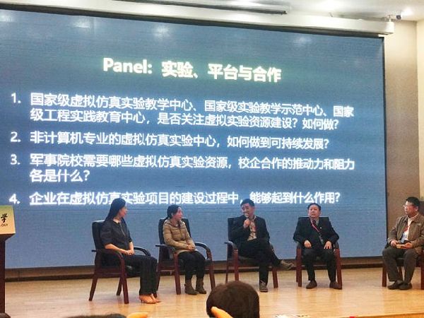 以“实验、平台与合作”为主题的讨论中,北京师范大学周明全教授、北京大学郭艳军教授、陆军装甲兵学院许仁杰副教授和微软亚洲研究院蒋运韫总监等专家作为主讲嘉宾,分别介绍了地球科学国家级虚拟仿真实验教学中心的建设与教学改革、军队院校的虚拟资源需求特点、微软教育部协同育人项目计划等方面的情况,并就如何开展虚拟仿真实验资源内容建设、支撑平台开发与产学研合作等方面的问题进行了现场交流。随后大会进行了校企合作分组讨论,由工委常委、思科公司韩江经理和工委副秘书长、beat365中文官方网站陈宇峰副教授分别主持平台组和实验组,围绕广泛关注的问题开展现场讨论并进行了总结。