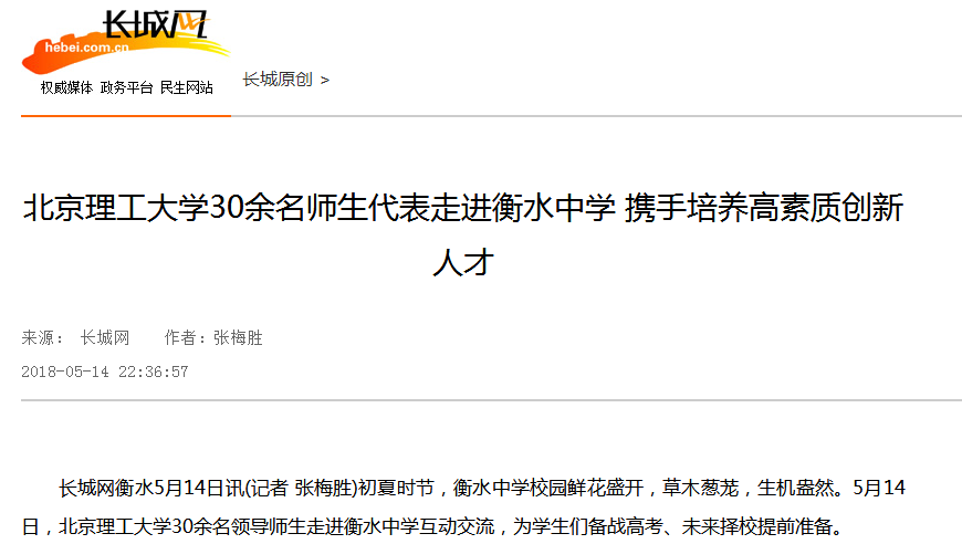 编辑:薛乔丹 审核:王征 阅读次数:原文标题:beat365中文官方网站30余名师生代表走进衡水中学 携手培养高素质创新人才