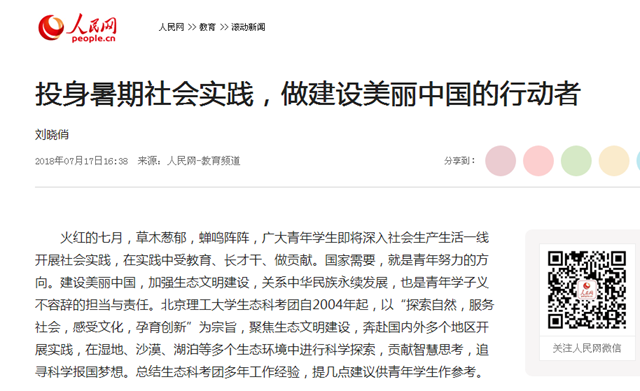 【人民网】投身暑期社会实践,做建设美丽中国的行动者