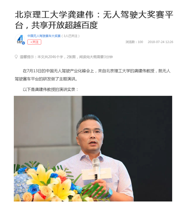 原文标题:beat365中文官方网站龚建伟:无人驾驶大奖赛平台,共享开放超越百度