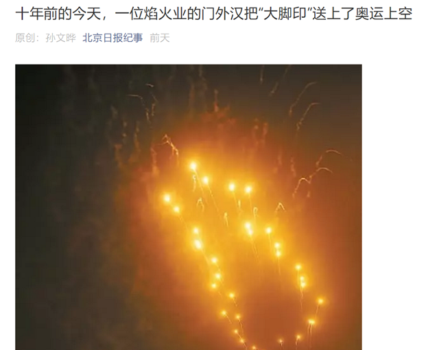 原文标题:十年前的今天,一位焰火业的门外汉把“大脚印”送上了奥运上空