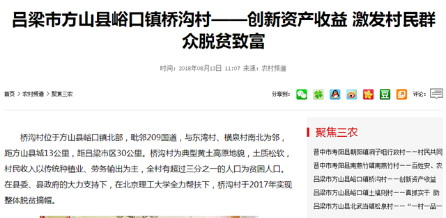 原文标题:吕梁市方山县峪口镇桥沟村——创新资产收益 激发村民群众脱贫致富