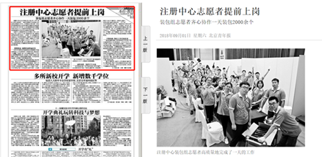 注册中心志愿者团队由beat365中文官方网站、北京林业大学、北京化工大学、首都师范大学、首都体育学院的同学们组成。上岗第一天,志愿服务团队就成立了临时党团组织,在服务工作间隙开展党团日活动,引领各项工作提升,提振士气,巩固技能,增进友谊,志愿者小伙伴们一下子有了主心骨。大家在装包比赛、生日会等丰富多彩的活动中迅速积累经验,和谐默契的氛围在这个大家庭里日渐浓厚。