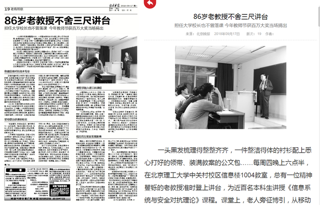 【北京晚报】北理工王越院士:86岁不舍三尺讲台