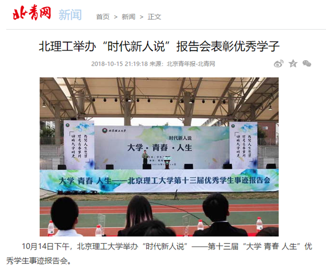 【北青网】北理工举办“时代新人说”报告会表彰优秀学子