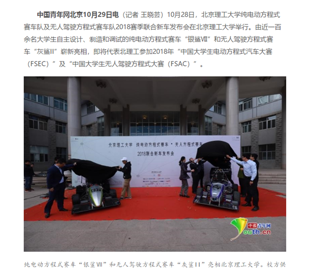 【中国青年网】北理工学子自主设计无人车将参加中国大学生无人驾驶方程式大赛