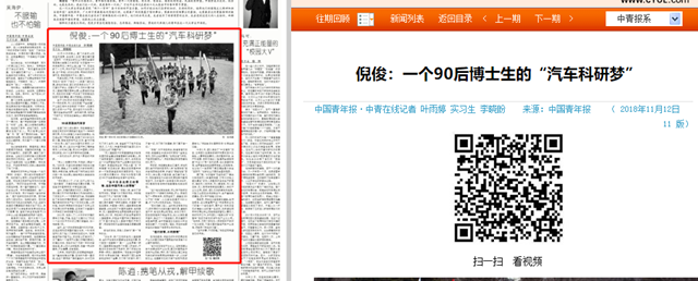 【中国青年报】倪俊:一个90后博士生的“汽车科研梦”