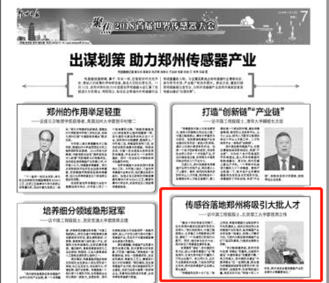 【郑州日报】周立伟:传感谷落地郑州将吸引大批人才