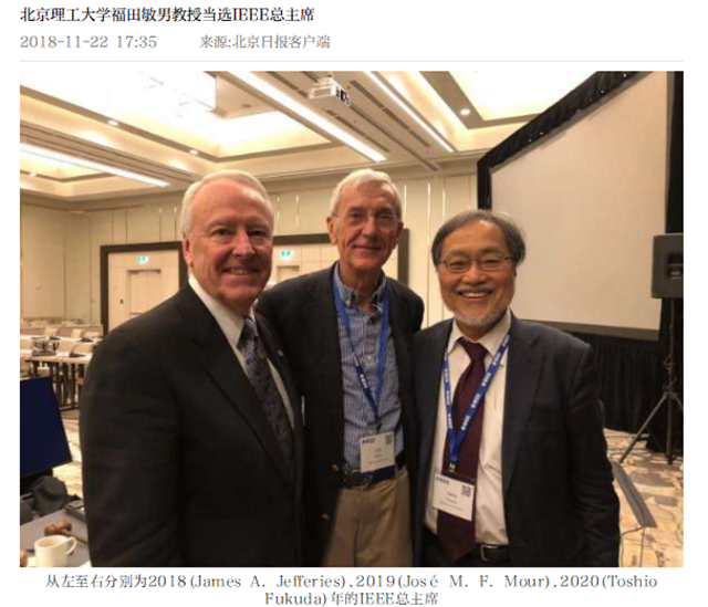 【北京日报客户端】beat365中文官方网站福田敏男教授当选IEEE总主席