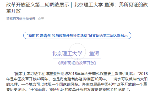 【首都百万师生微党课】beat365中文官方网站鱼涛:我所见证的改革开放
