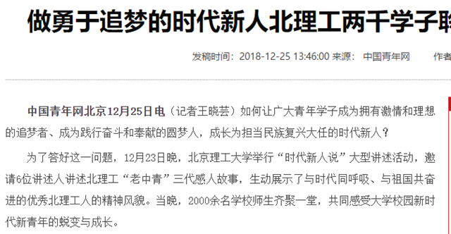 【中国青年网】做勇于追梦的时代新人北理工两千学子聆听“时代新人说”
