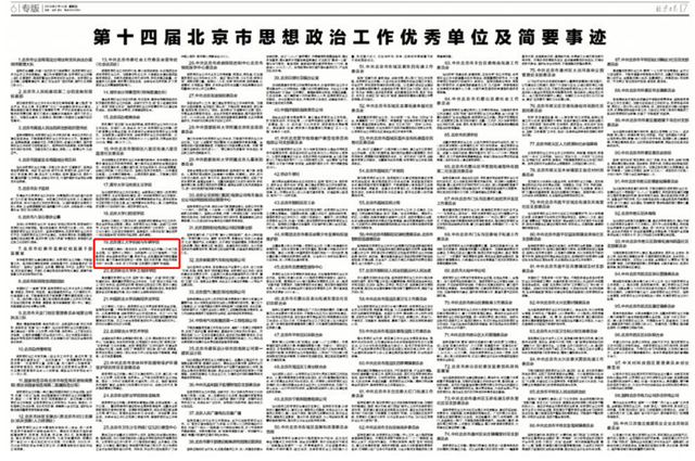 【北京日报】第十四届北京市思想政治工作优秀单位及简要事迹