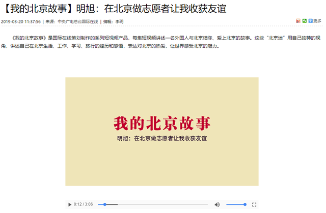 【央广国际在线】北理工留学生明旭:在北京做志愿者让我收获友谊