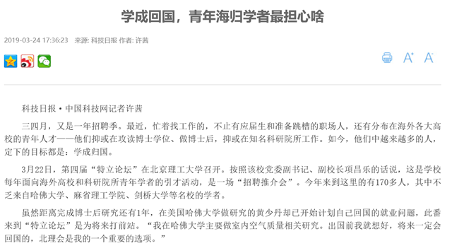 三四月,又是一年招聘季。最近,忙着找工作的,不止有应届生和准备跳槽的职场人,还有分布在海外各大高校的青年人才——他们抑或在攻读博士学位、做博士后,抑或在知名科研院所工作。如今,他们中越来越多的人,定下的目标都是:学成归国。