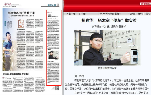 【科技日报】北理工杨春华: 搭太空“便车”做实验