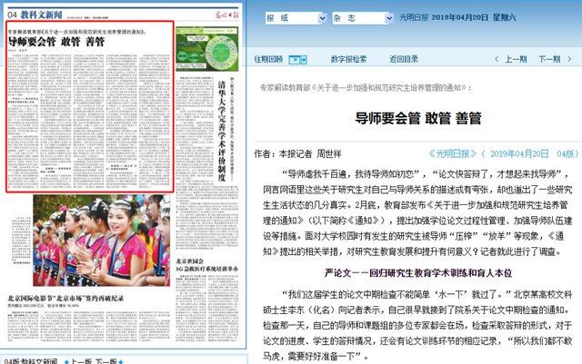 “导师虐我千百遍,我待导师如初恋”,“论文快答辩了,才想起来找导师”,网言网语里这些关于研究生对自己与导师关系的描述或有夸张,却也道出了一些研究生生活状态的几分真实。2月底,教育部发布《关于进一步加强和规范研究生培养管理的通知》(以下简称《通知》),提出加强学位论文过程性管理、加强导师队伍建设等措施。面对大学校园时有发生的研究生被导师“压榨”“放羊”等现象,《通知》提出的相关举措,对研究生教育发展和提升有何意义?记者就此进行了调查。