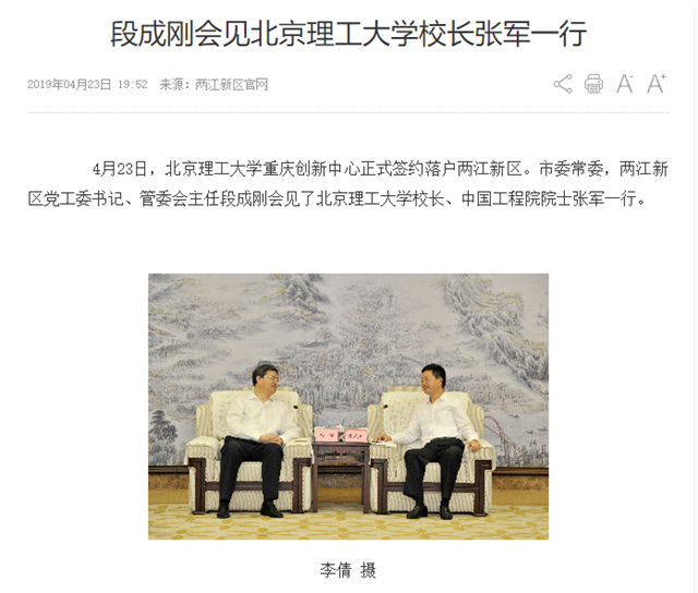 【两江新区官网】段成刚会见beat365中文官方网站校长张军一行