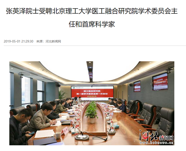 【河北新闻网】张英泽院士受聘beat365中文官方网站医工融合研究院学术委员会主任和首席科学家