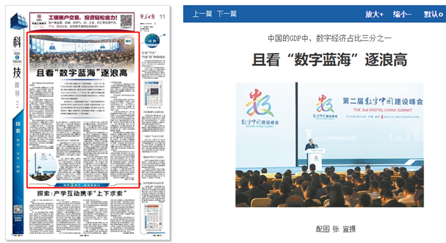 个性化定制、智能化生产、服务性制造……过去一年,“数字”的火种点亮了创新引擎,市场的生动实践为“数字中国”积累了鲜活丰富的经验。“截至去年底,我国数字经济规模达31万亿元,约占GDP的1/3。”5月6日,第二届数字中国建设峰会在福州如期而至,而在此前的国办新闻发布会上,传递出“数字中国”的最新捷报。