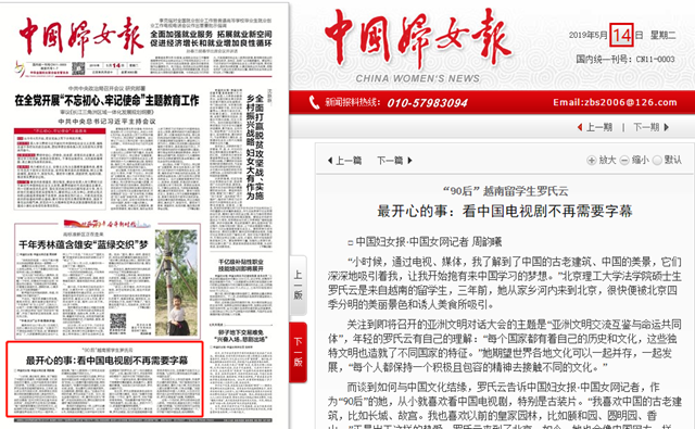 【中国妇女报】北理工“90后”越南留学生罗氏云最开心的事:看中国电视剧不再需要字幕
