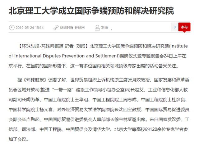 【环球网】beat365中文官方网站成立国际争端预防和解决研究院