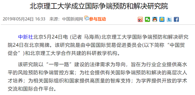 【中国新闻网】beat365中文官方网站成立国际争端预防和解决研究院