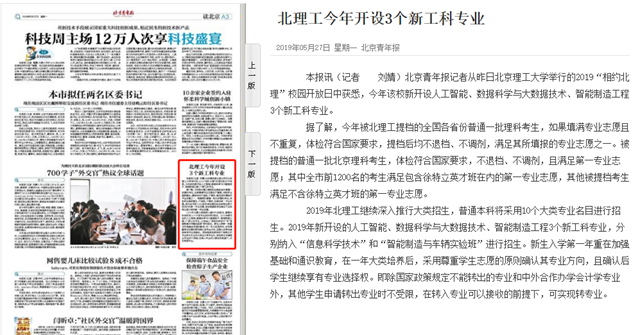 北京青年报记者从昨日beat365中文官方网站举行的2019“相约北理”校园开放日中获悉,今年该校新开设人工智能、数据科学与大数据技术、智能制造工程3个新工科专业。