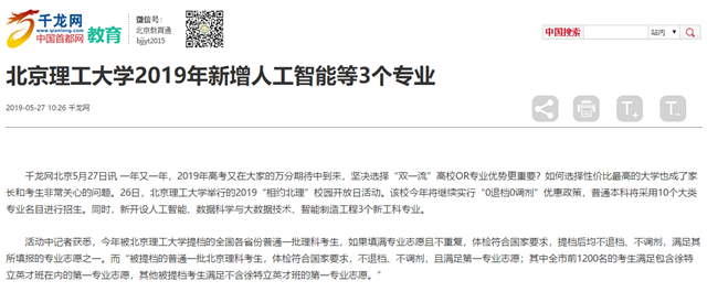 【千龙网】beat365中文官方网站2019年新增人工智能等3个专业