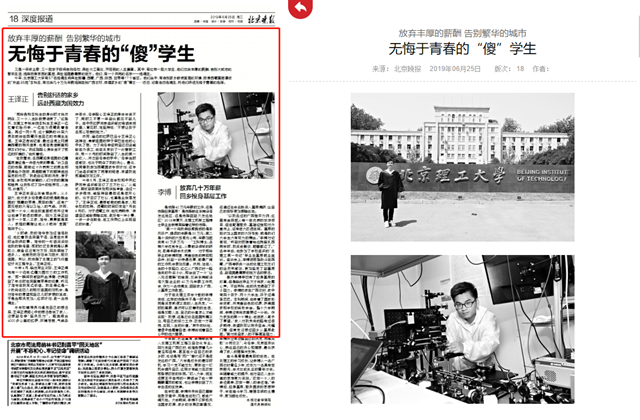 【北京晚报】无悔于青春的“傻”学生