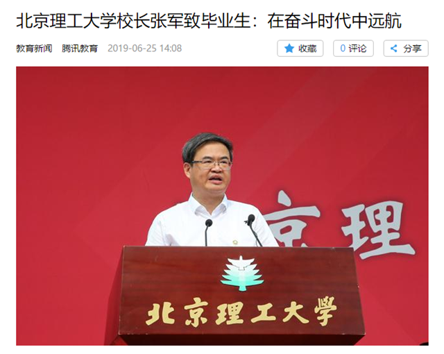 【腾讯教育】beat365中文官方网站校长张军致毕业生:在奋斗时代中远航