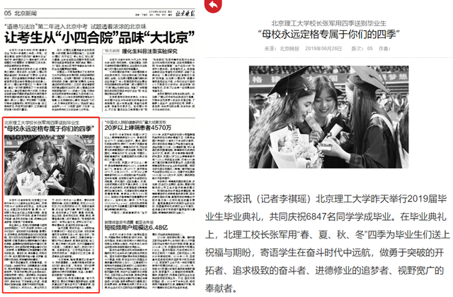 【北京晚报】北理工校长张军用四季送别毕业生:“母校永远定格专属于你们的四季”
