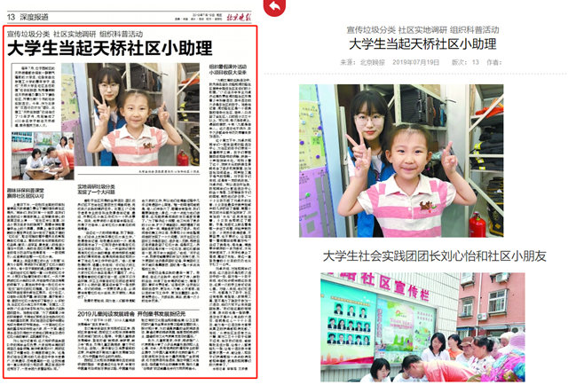 借助于社区开展的各种活动,团队成员们还不忘给社区居民发放调查问卷,完成此次实践的调研任务。北理工17级电子信息专业的本科生张潇告诉记者,最近,开展垃圾分类工作成为一个热点事件。因此,他带领的小组在留学路社区,开展了对老年人咨询垃圾分类意见的问卷调查。