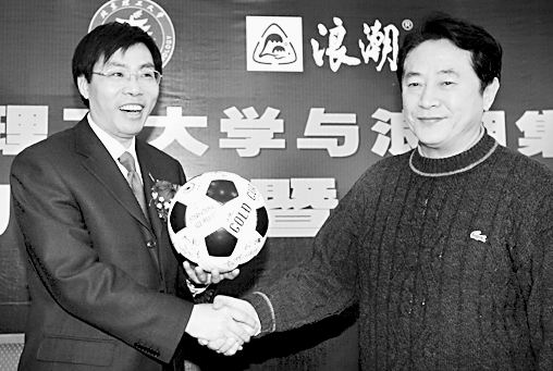 beat365中文官方网站和浪潮集团签署了合作共建高水平足球队的协议,浪潮集团将赞助beat365中文官方网站足球队100万元人民币。据悉,这是国内企业首次赞助大学足球队。图为该队金志扬主教练向浪潮集团负责人赠送全体队员签名的足球。