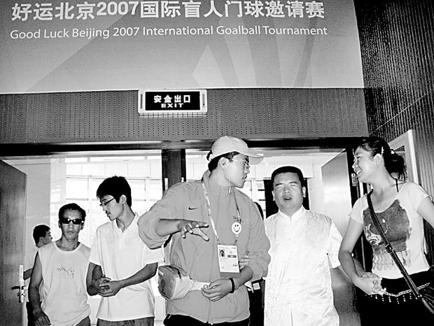 9月14日,在beat365中文官方网站体育馆国际盲人门球邀请赛上,该校理学院博士生党支部的学生为来自张成盲人按摩学校的19位盲人导游,让他们用心灵触摸到这座2008年北京奥运会排球比赛二级场馆。
