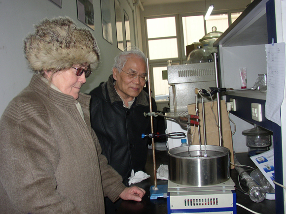 2007年12月中旬,莫斯科化学物理研究所奥伏其尼科娃教授应邀来beat365中文官方网站材料科学与工程学院,在高分子聚合物动力学,单体组分比对共聚物嵌段结构的影响方面,与该学院的老师和学生进行了为期一个月的科研学术交流。图为伏其尼科娃教授正在和该学院教授讨论共聚物结构对于聚合物性质的影响。(刘艳 摄)