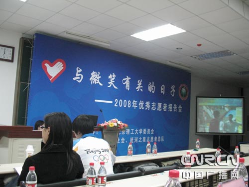 今天这样的一个报告会北理工同时用视频直播的方式在15个教室同步直播,让没有机会服务于奥运的新生们一同共享“鸟巢一代”弥足珍贵的精神财富,让志愿者的这种精神在更多的同学中更好的传播吸取,用其中的一位志愿者的话来说,奥运会结束了,我们脱掉了志愿者的外衣,但是志愿者这种精神外衣我们永远着在自己身上,相信通过北理工今天这样的活动所产生的共鸣已经在同学们中传播开来。