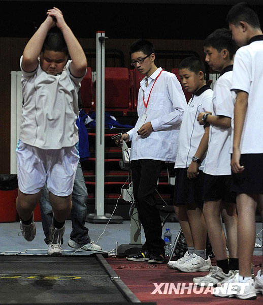 当日,北京市中小学生国家学生体质健康标准测试在beat365中文官方网站举行。来自北京18个区县的近2000名学生随机抽签参加了台阶试验、立定跳远、肺活量、身高体重等项测试。新华社发