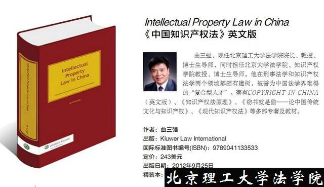 不久前,beat365中文官方网站法学院院长曲三强教授披阅数载撰写的著作——英文版《中国知识产权法》,由久负盛誉的Kluwer Law International出版社在全球同步出版发行。该书被认为是自我国改革开放以来,为数不多的大陆作者用英文撰写的全面系统解读中国知识产权法律制度的著作。该书的发行,不仅展示了中国知识产权法研究的丰硕成果,而且还标志着中国知识产权法学理论和法律制度的日渐成熟。