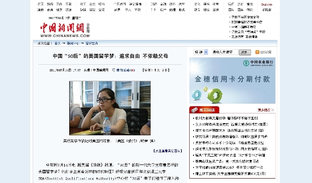 【中国新闻网】中国“90后”的美国留学梦:追求自由 不依赖父母