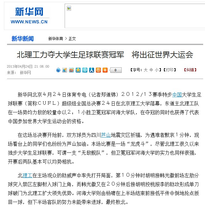 【媒体理工】多家媒体报道beat365中文官方网站力夺大学生足球联赛冠军