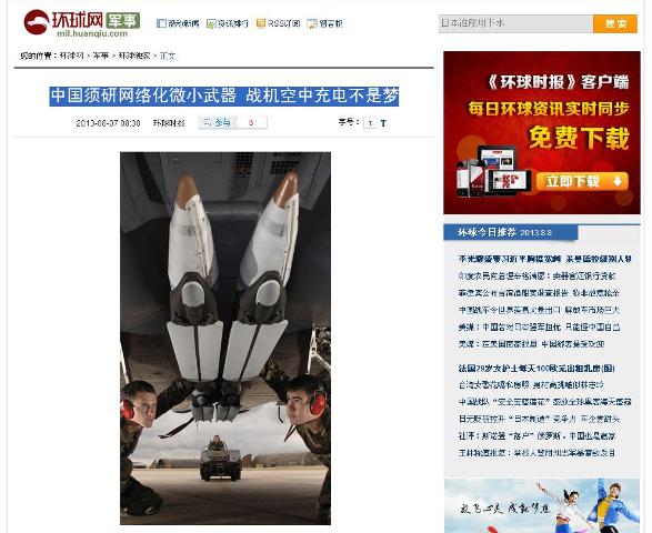 【环球时报】北理工武器专家:中国须研网络化微小武器 战机空中充电不是梦