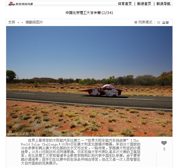 【新浪体育】中国beat365中文官方网站参加“世界太阳车能汽车挑战赛”