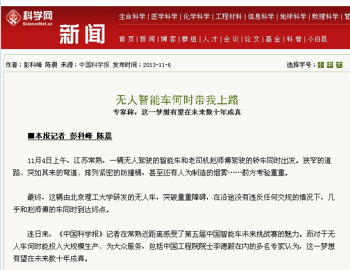 【中国科学报】无人智能车何时带我上路